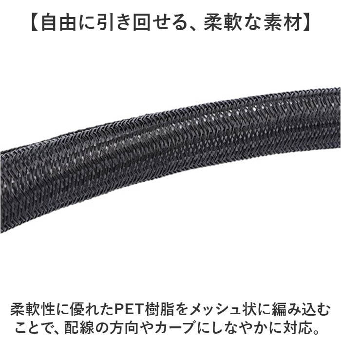 ・柔軟性に優れたPET樹脂をメッシュ状に編み込むことで、配線の方向やカーブにしなやかにフィット。