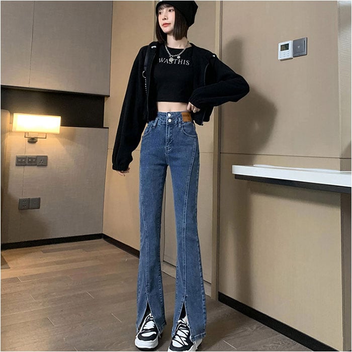 デニムパンツ スリット レディース 通販 フレアデニムパンツ フレアパンツ ジーンズ パンツ デニム ベルボトム フレア 長ズボン ズボン ロングパンツ ハイウエスト ブーツカット スリット入り きれいめ 大人 カジュアル かっこいい 韓国 ボトムス