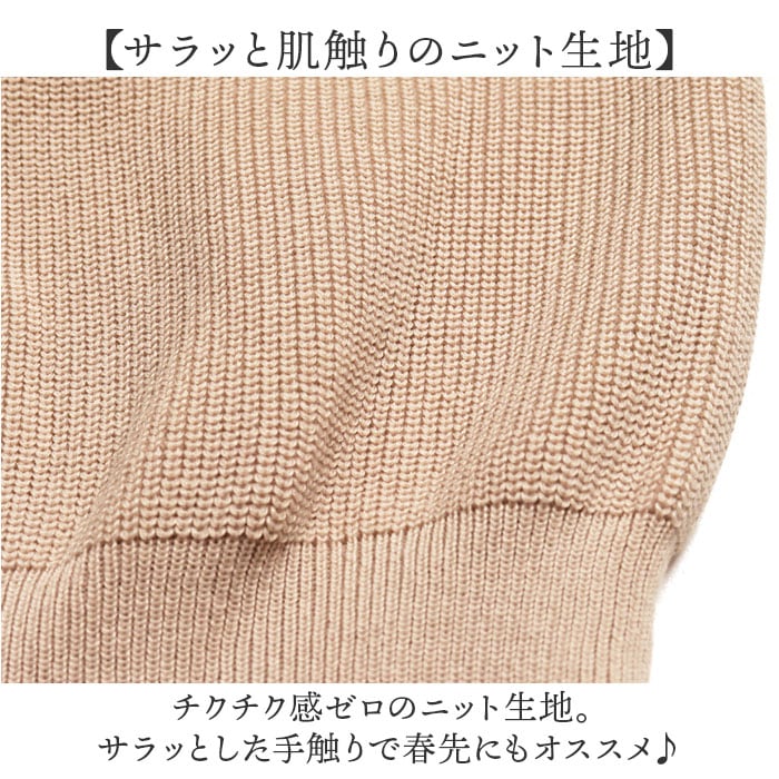 ・チクチク感ゼロのニット生地。サラッとした手触りで春先にもオススメ♪