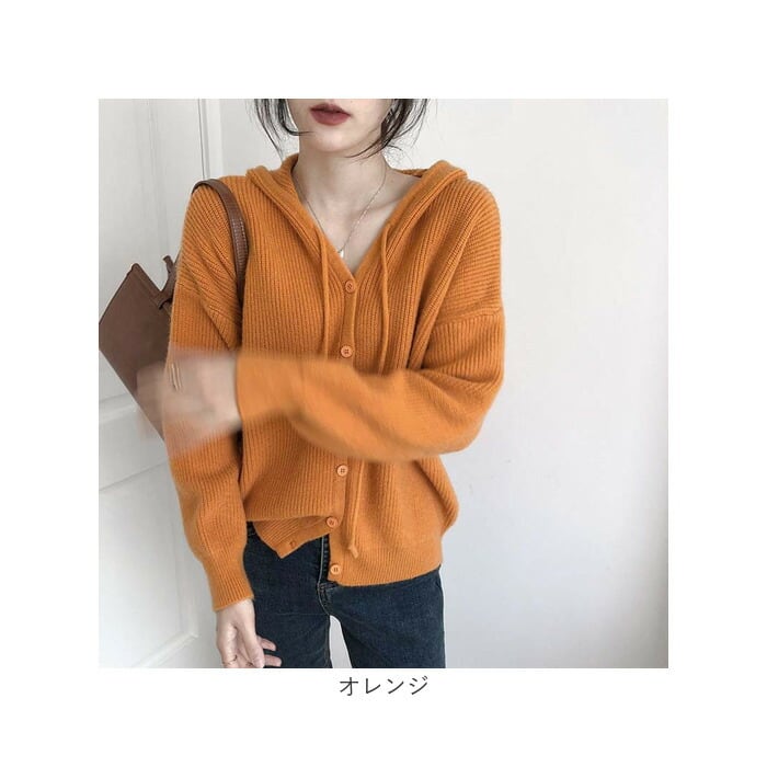 ・肌寒い時にサッと羽織って暖かさをプラス。フード付きのニットカーディガン。