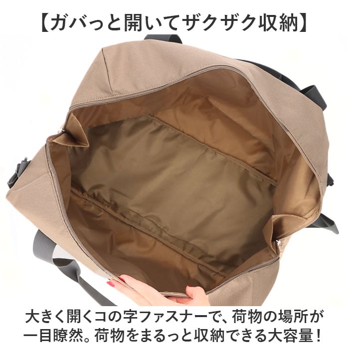 ・大きく開くコの字ファスナーで、荷物の場所が一目瞭然。荷物をまるっと収納できる大容量!