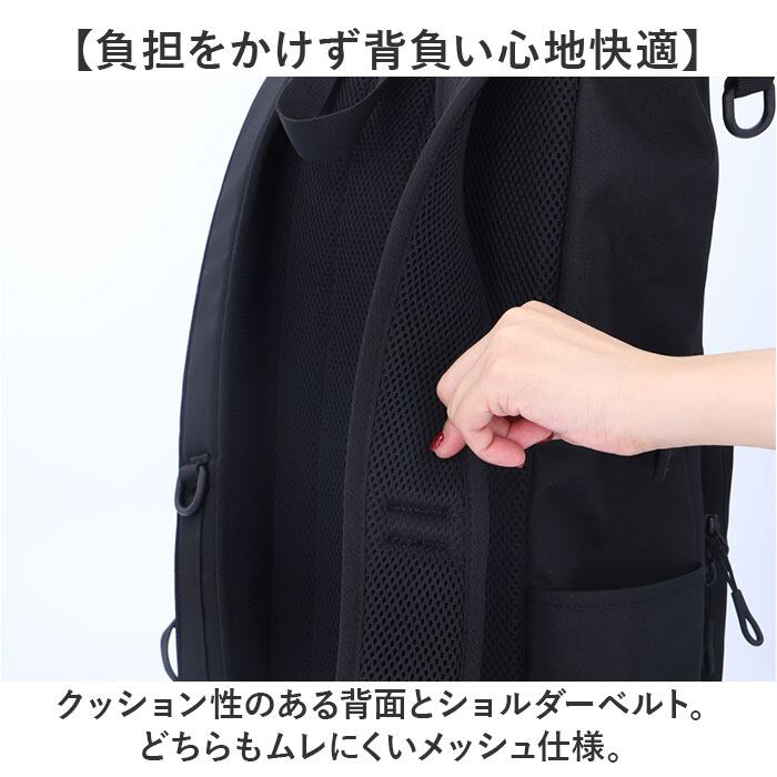 ・クッション性のある背面とショルダーベルト。どちらもムレにくいメッシュ仕様。