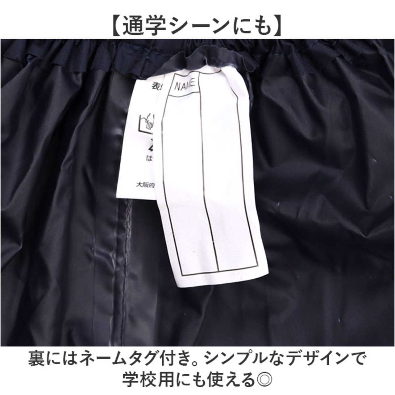 ・裏にはネームタグ付き。シンプルなデザインで学校用にも使える◎