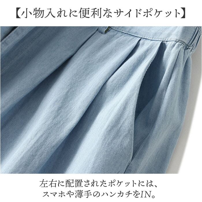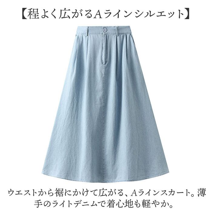 ・ウエストから裾にかけて広がる、Aラインスカート。薄手のライトデニムで着心地も軽やか。