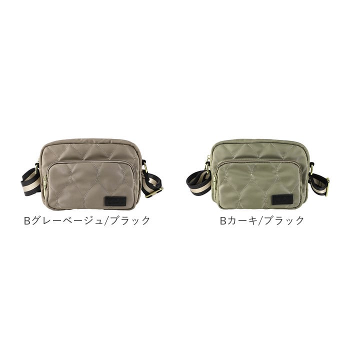 ・光沢のある高密度ナイロン生地に、ふっくらキルティング。ライン入りショルダーがアクセント!