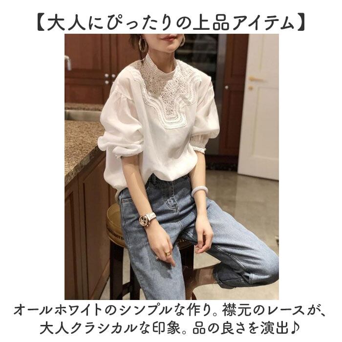 ・オールホワイトのシンプルな作り。襟元のレースが、大人クラシカルな印象。品の良さを演出♪