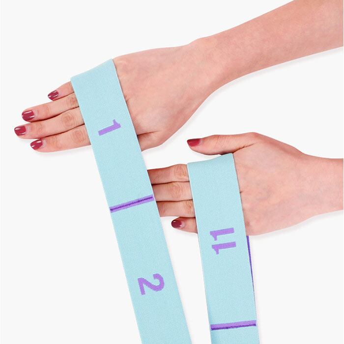 ・バンドには10段階の数字を配置。ループ状になっているので、腕や足をひっかけて負荷を調節◎