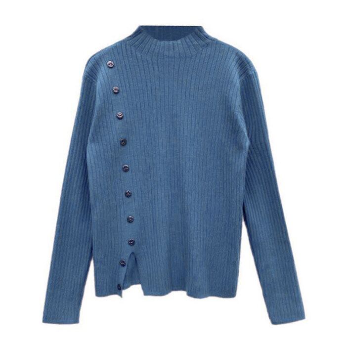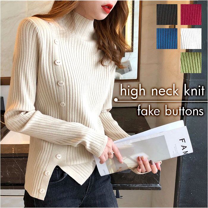 ・ほどよいタイト感で嬉しい細見え効果。「ハイネックニット トップス サイドボタン」が登場。