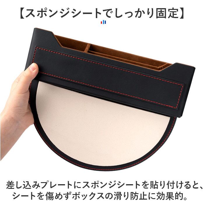 ・ボックス下部の半月型のプレートをセンターコンソールとシート隙間に埋め込むだけで設置が簡単!