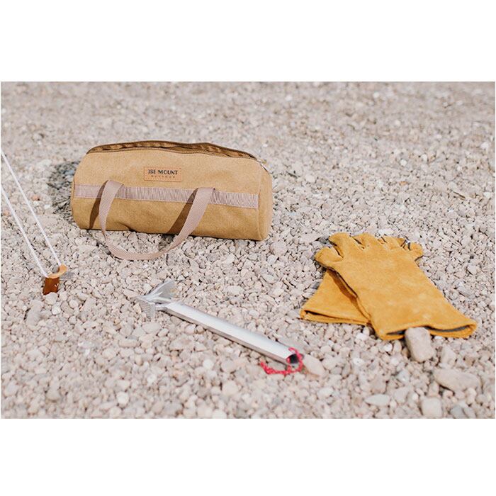 ・スリムなフォルムながらペグやロープ、工具など必要な物はしっかり収納できるサイズ感。