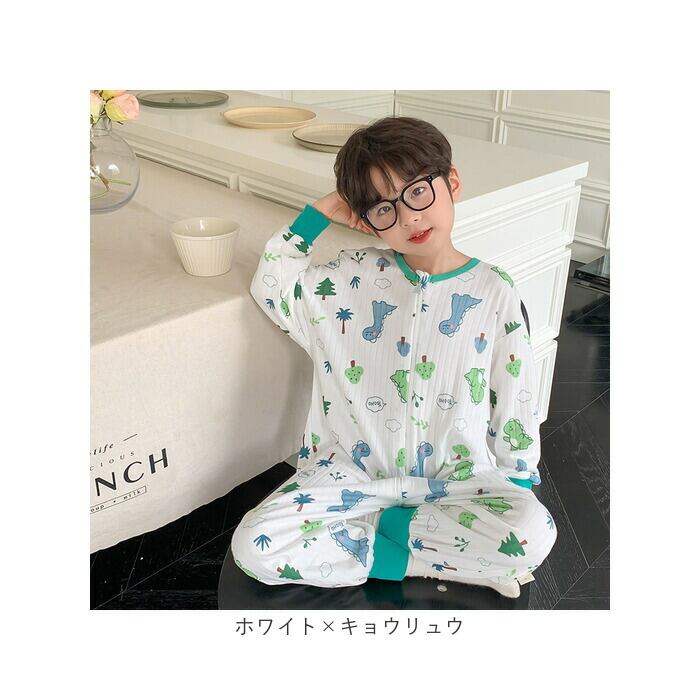 ロンパース 前開き キッズ 長袖 通販 カバーオール 寝袋 つなぎ パジャマ 寝間着 寝巻 寝巻き ファスナー ダブルガーゼ 総柄 柄 綿 コットン 柔らかい やわらかい 女の子 男の子 男女兼用 ユニセックス 春 秋 冬 かわいい 可愛い