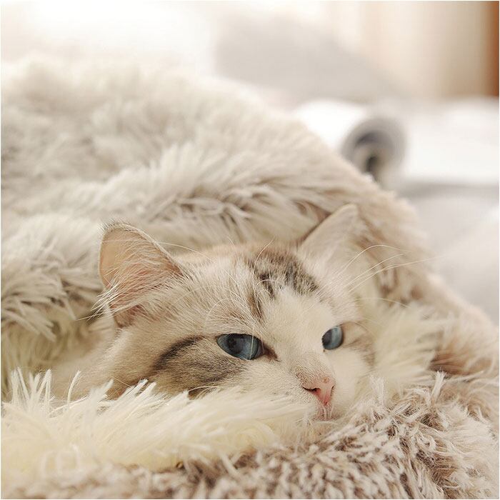 ・ふわふわの豊かな毛足で、コロンと丸まってほっこりくつろげる「ドーム型ペットハウス」が新登場!