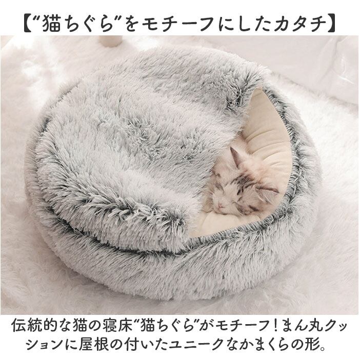 ・伝統的な猫の寝床“猫ちぐら”がモチーフ!まん丸クッションに屋根の付いたユニークなかまくらの形。