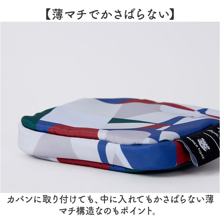 ・カバンに取り付けても、中に入れてもかさばらない薄マチ構造なのもポイント。