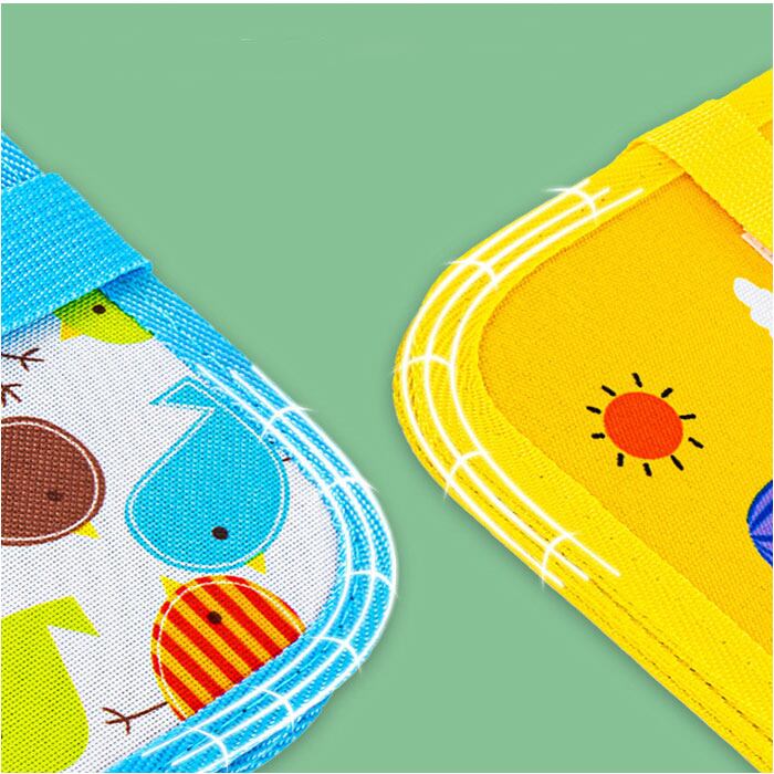 ・開け閉めが簡単な面ファスナーベルト、手についたペンも自分で拭き取りOKなど自分で扱える!