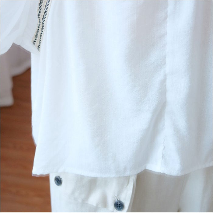・チロリアンテープで、パッと華やかに!シャツだけど、カジュアルダウンしやすいのがGOOD。