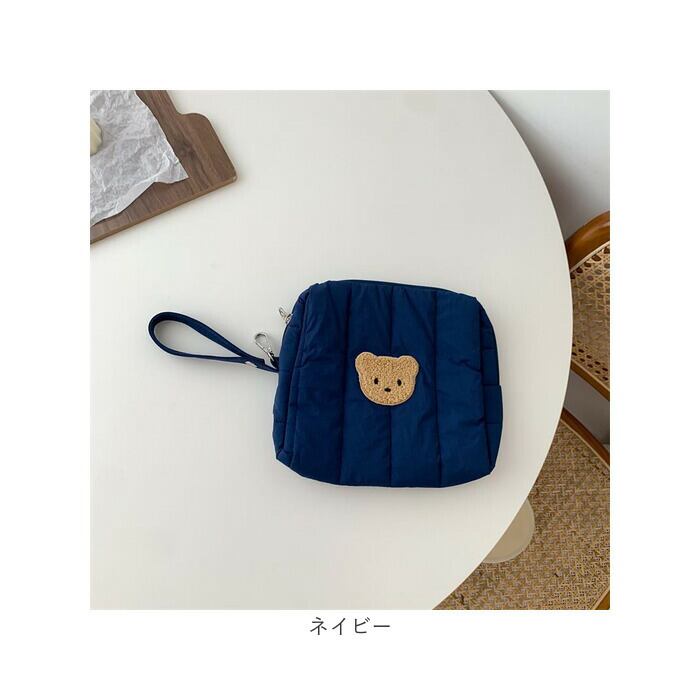 おむつポーチ 収納 ハンドバッグ 刺繍 くま