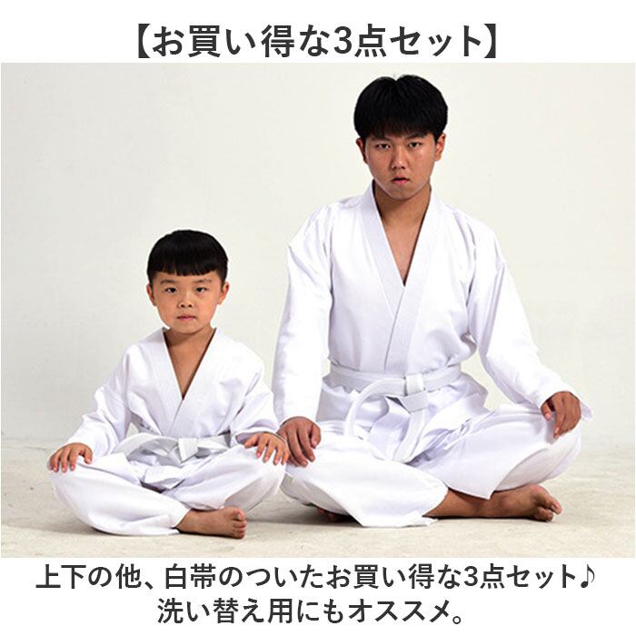・上下の他、白帯のついたお買い得な3点セット♪洗い替え用にもオススメ。