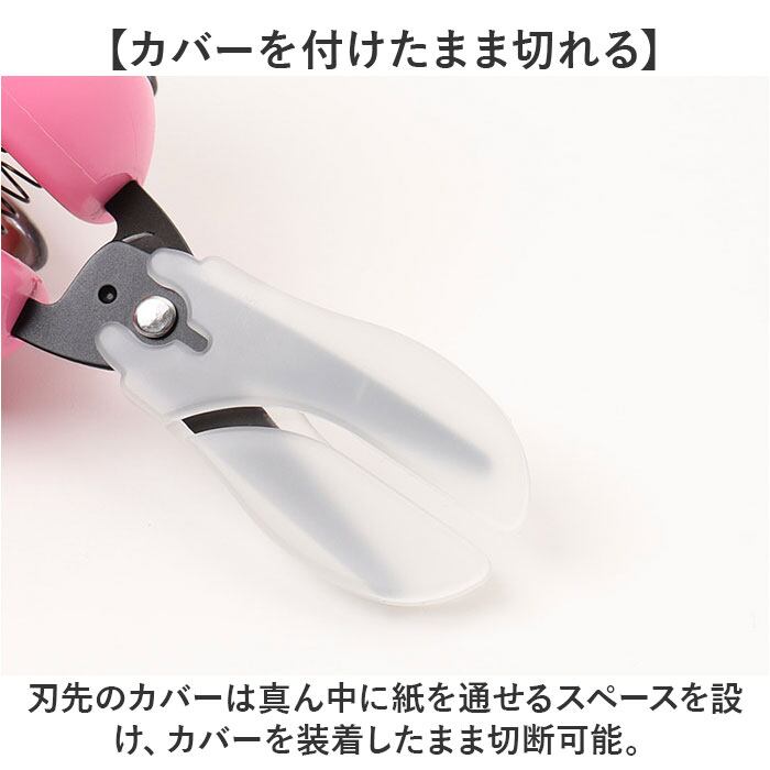 ・刃先のカバーは真ん中に紙を通せるスペースを設け、カバーを装着したまま切断可能。