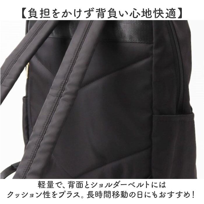・軽量で、背面とショルダーベルトにはクッション性をプラス。長時間移動の日にもおすすめ!