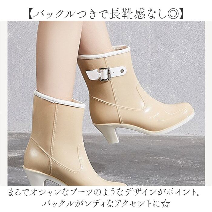 ・レインブーツでは珍しい、ヒールつきデザイン!安定感のある太めヒールだから雨の日も安心。