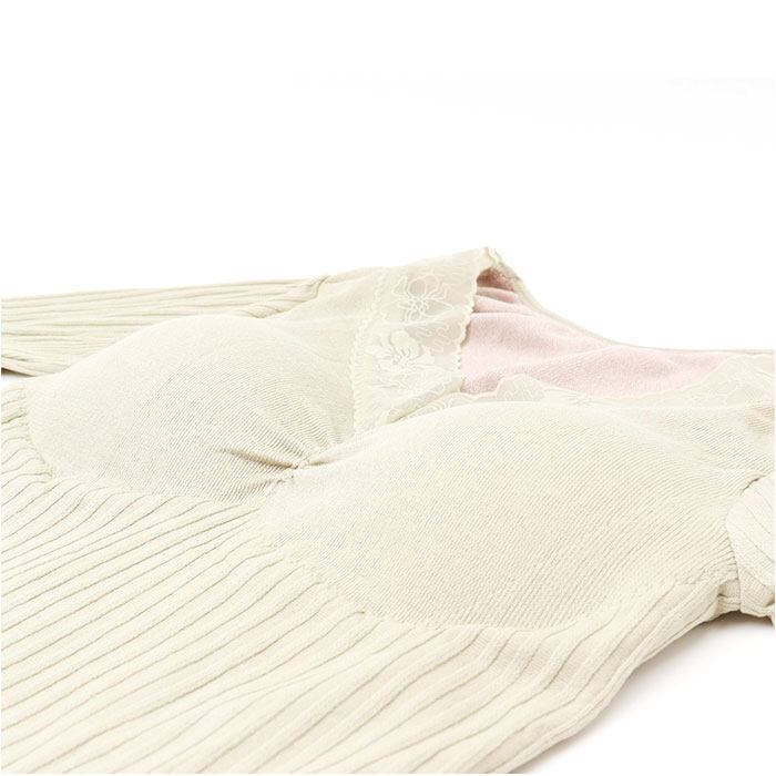・バストを優しく包み込む、ソフトなカップつき。ブラなしで着られて締め付け感が少ない◎