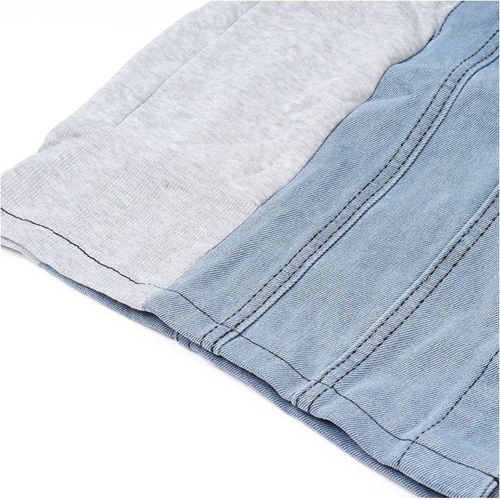 ・デニム&スウェットの切り替えデザイン!個性の光る「オーバーサイズデニムジャケット」。