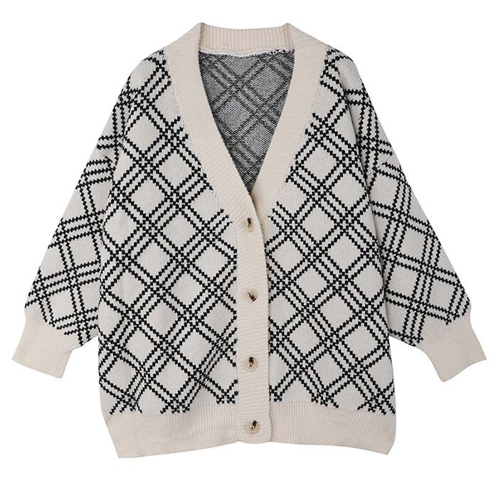 ニットカーディガン ダイアゴナルチェック柄 mmvneckca20i