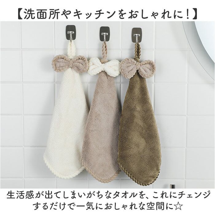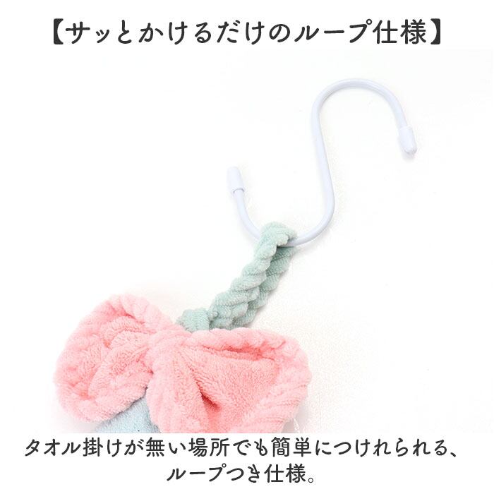 ・タオル掛けが無い場所でも簡単につけれられる、ループつき仕様。