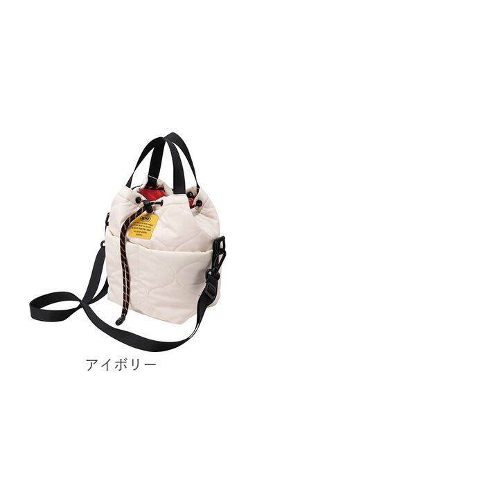 ・柔らかなキルティング生地に、ロゴタグや開口部のコードがアクセント!お揃いやシェアも♪