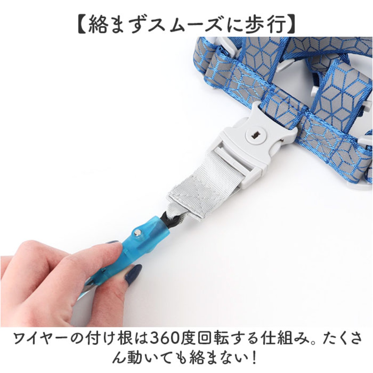・ワイヤーの付け根は360度回転する仕組み。たくさん動いても絡まない!