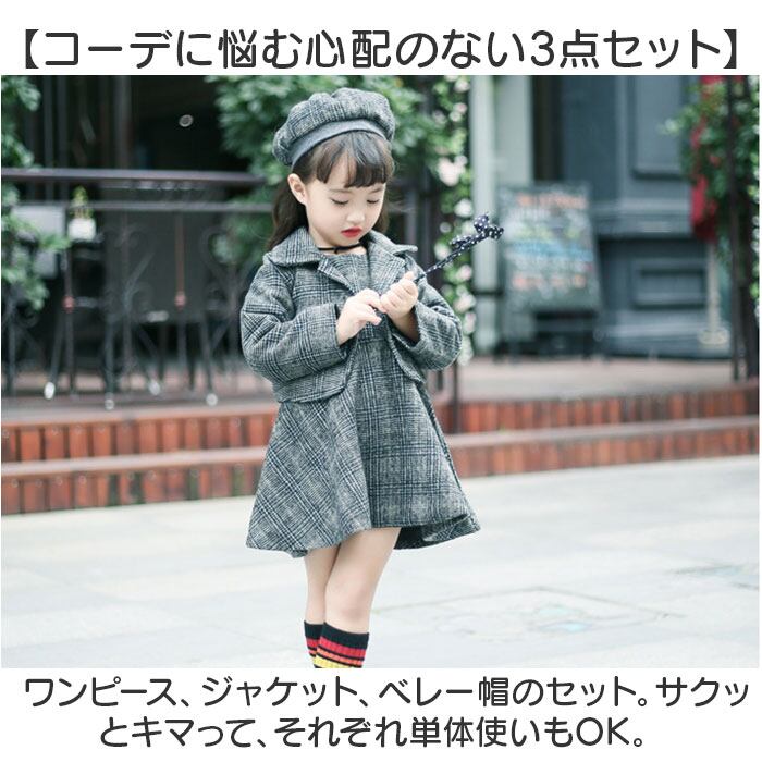 ・ワンピース、ジャケット、ベレー帽のセット。サクッとキマって、それぞれ単体使いもOK。