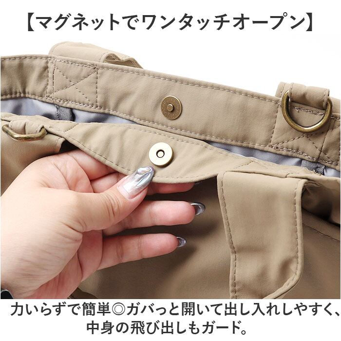 ・荷物が少ない時は、スナップボタンを留めてキュッとコンパクトに!