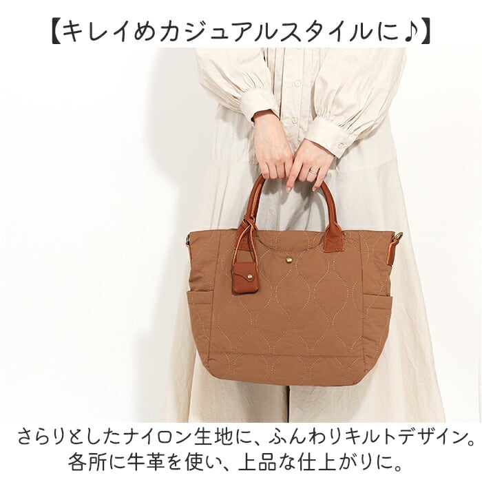 ・色んなシーンで活躍!おしゃれに持てる「toleur ナイロンキルティング2WAYトート」