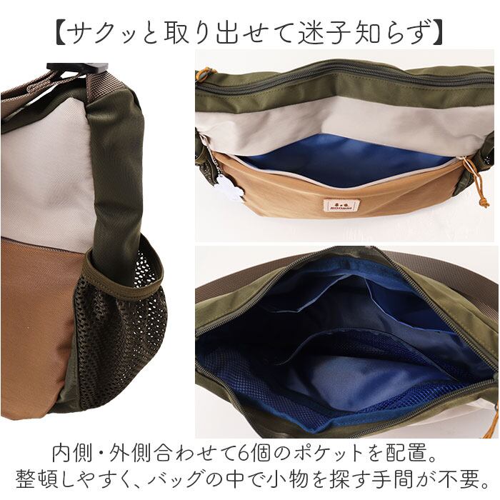 ・内側・外側合わせて6個のポケットを配置。整頓しやすく、バッグの中で小物を探す手間が不要。