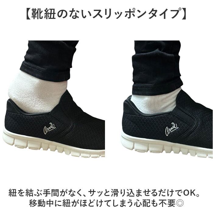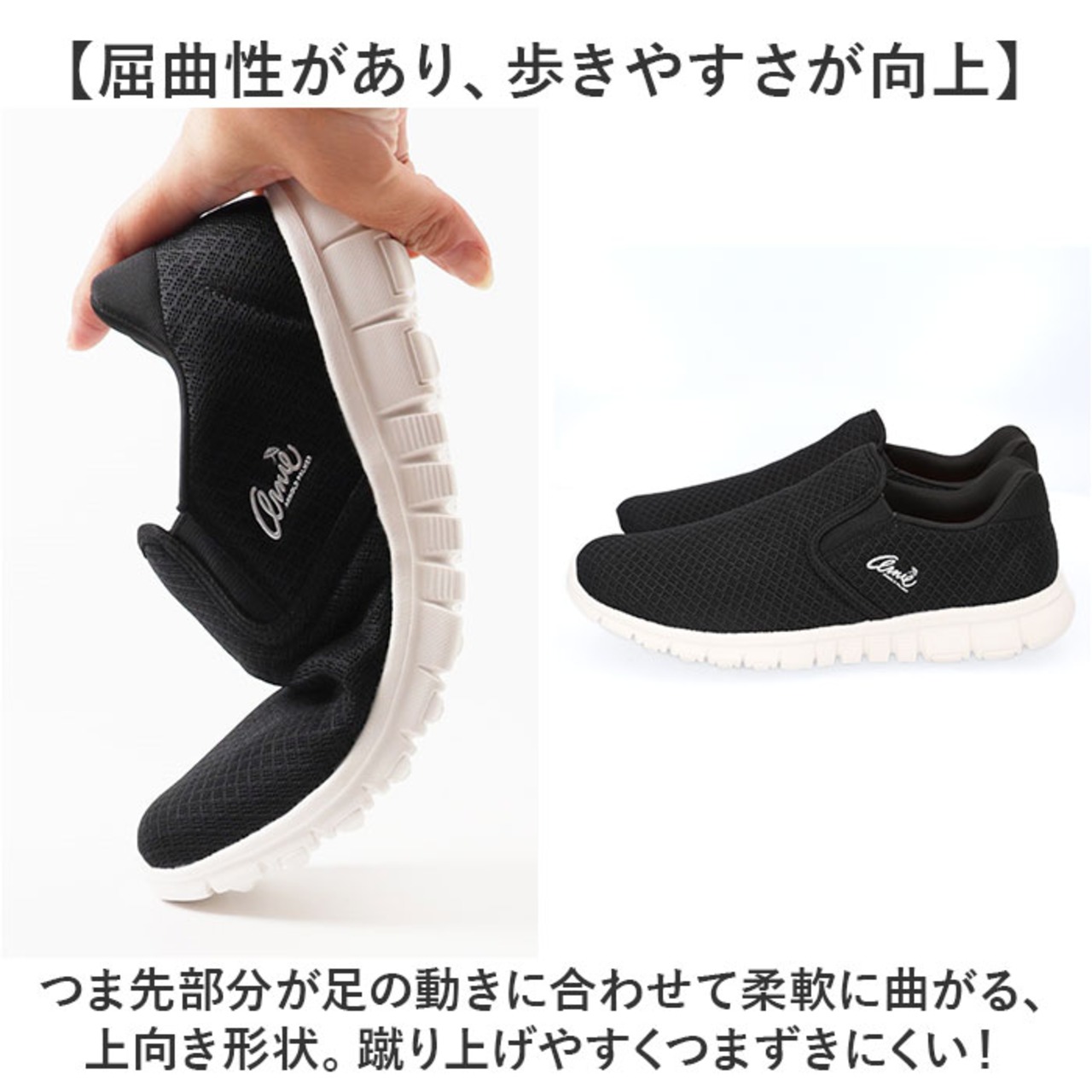 ・足さばきがスマートな軽量設計。通気性にも優れ、旅行やレジャーシーンにもおすすめ。