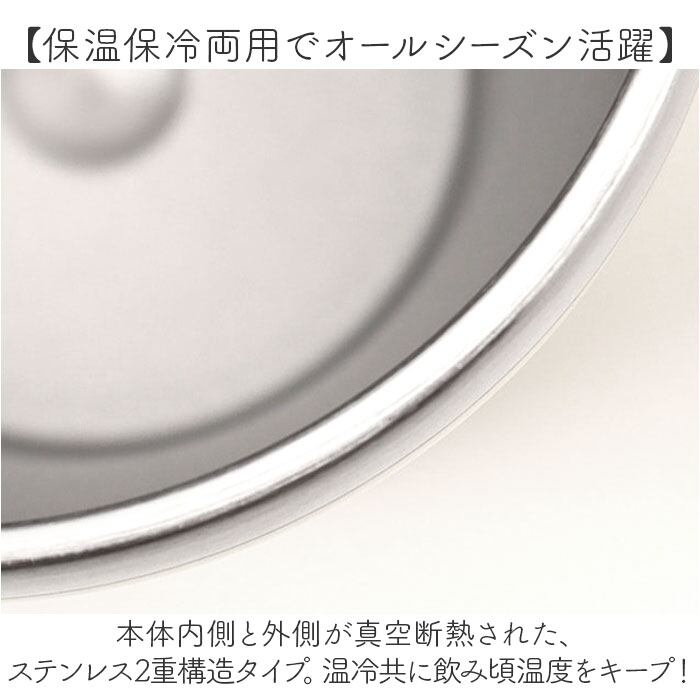 ・本体内側と外側が真空断熱された、ステンレス2重構造タイプ。温冷共に飲み頃温度をキープ!