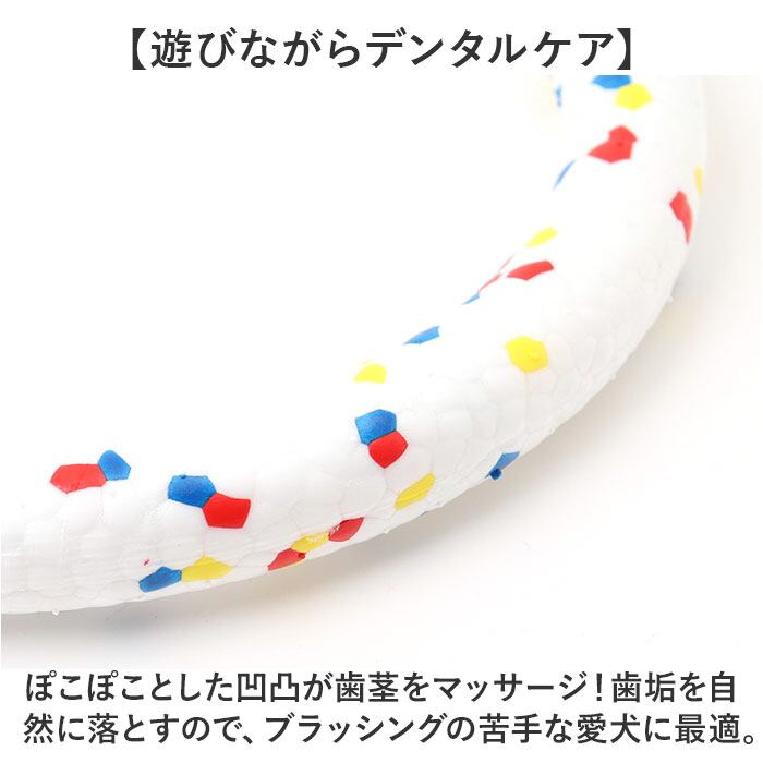 ・ワンちゃんが齧っても安心!ぷにぷに触感が歯に優しい、リング状に仕上げたユニークな玩具。