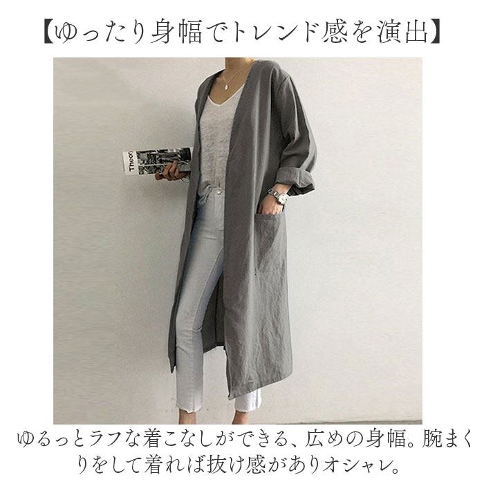レンチコート レディース ロング 通販 カーディガン カーデ コート ロングカーディガン 羽織り 羽織 スプリングコート 前開き 薄手 薄い Vネック ロング丈 無地 長袖 コットンリネン ゆったり 体型カバー カジュアル シンプル アウター 春 夏 秋