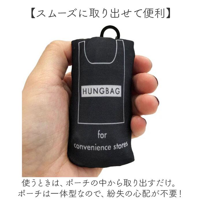 ・バッグを裏返してくるくるまとめ、ポーチにIN。ポケットに入れたり、カラビナで取り付け。