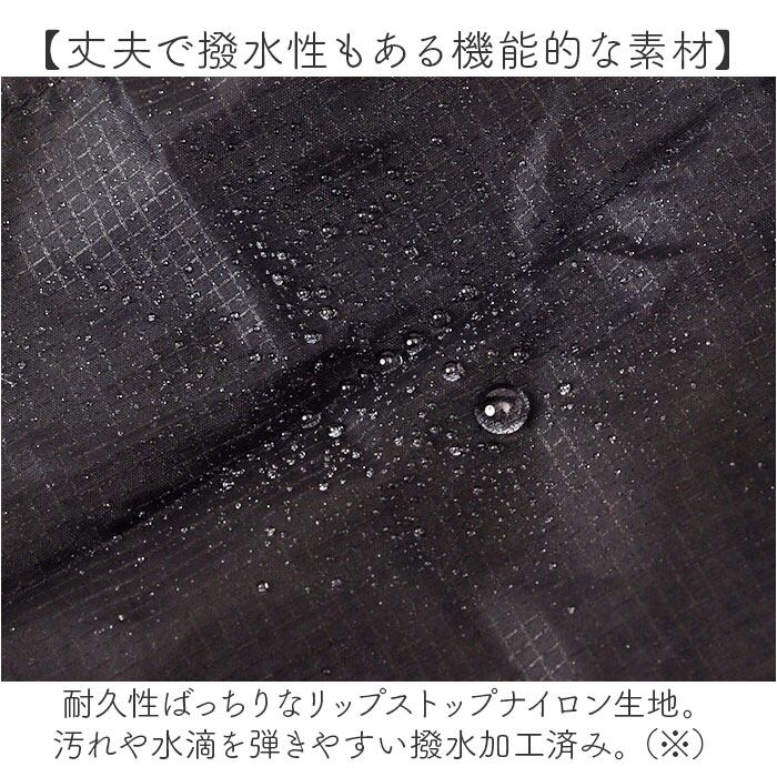 ・耐久性ばっちりなリップストップナイロン生地。汚れや水滴を弾きやすい撥水加工済み。