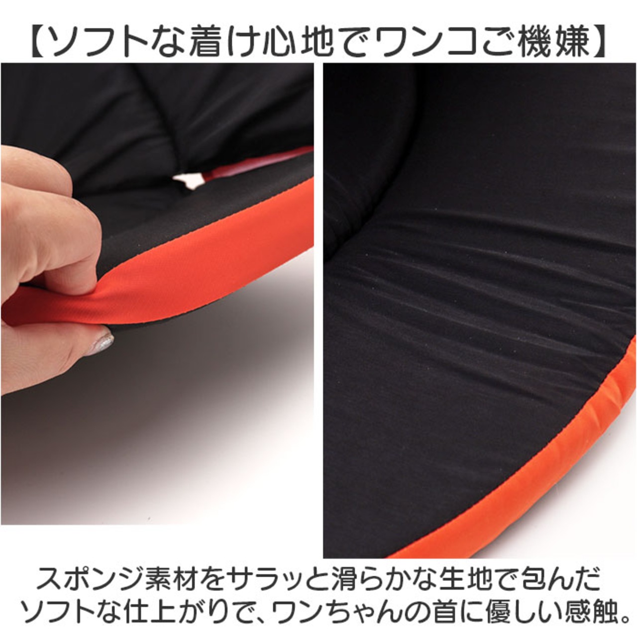 ・スポンジ素材をサラッと滑らかな生地で包んだソフトな仕上がりで、ワンちゃんの首に優しい感触。