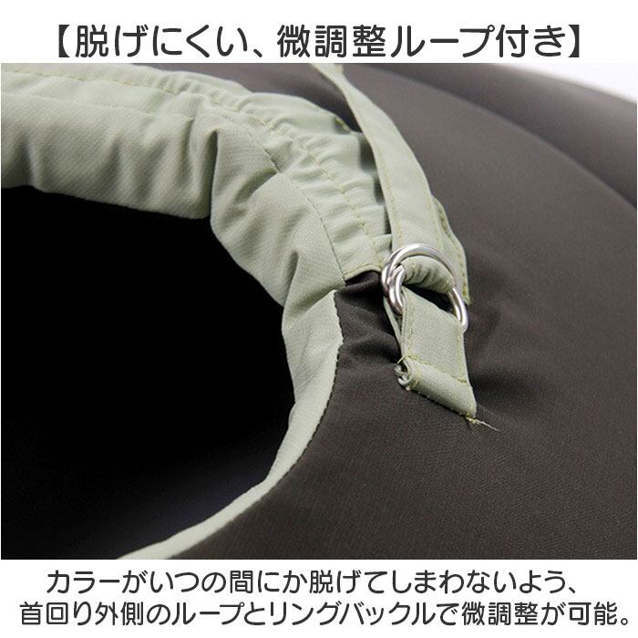 ・カラーがいつの間にか脱げてしまわないよう、首回り外側のループとリングバックルで微調整が可能。