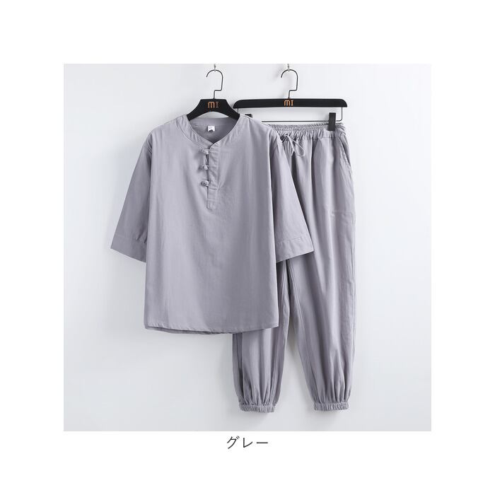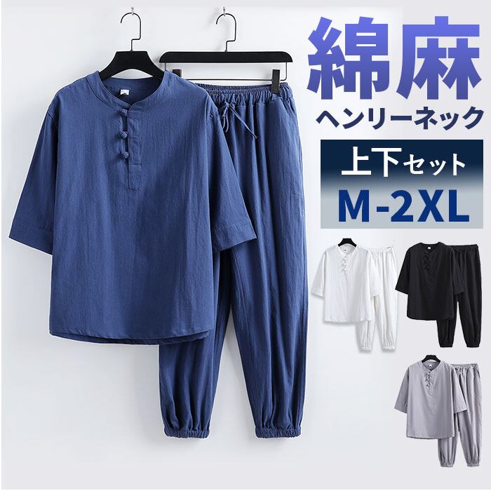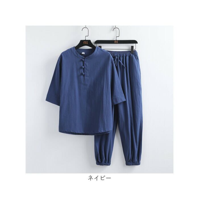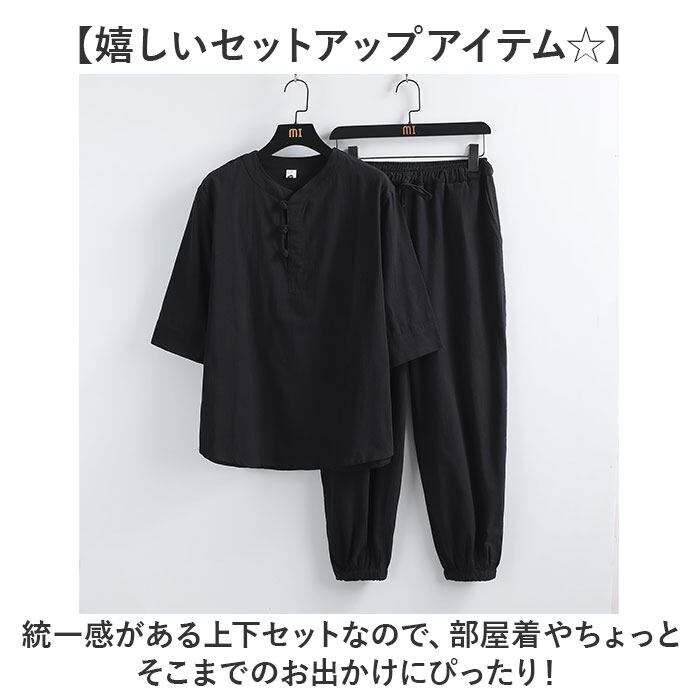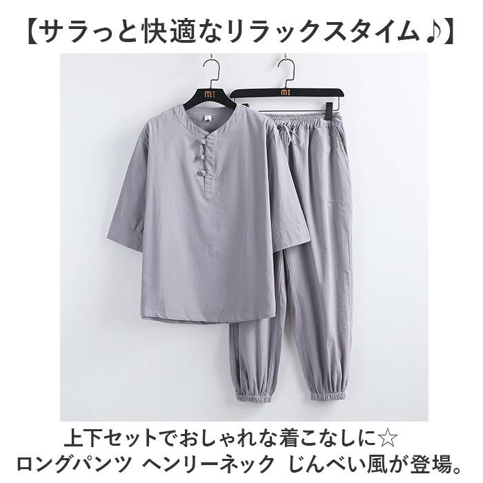 ・上下セットでおしゃれな着こなしに☆ ロングパンツ ヘンリーネック じんべい風 が登場。