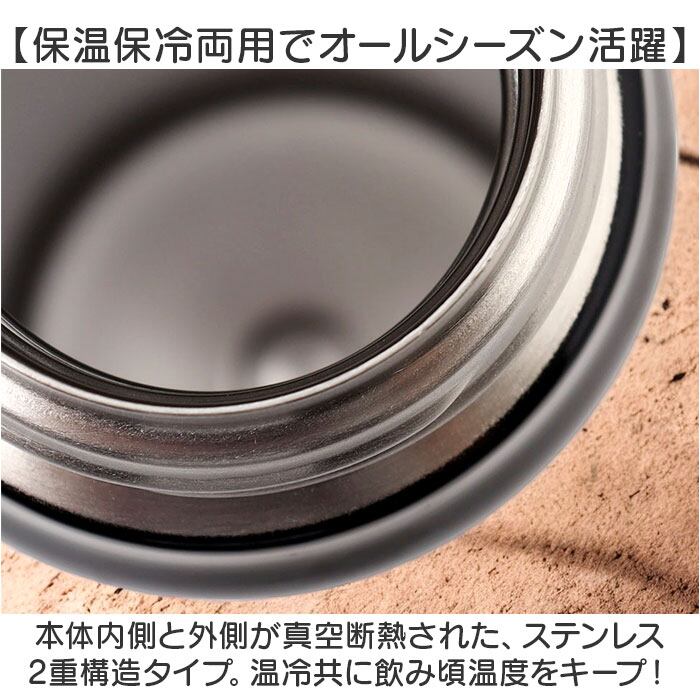 ・本体内側と外側が真空断熱された、ステンレス2重構造タイプ。温冷共に飲み頃温度をキープ!