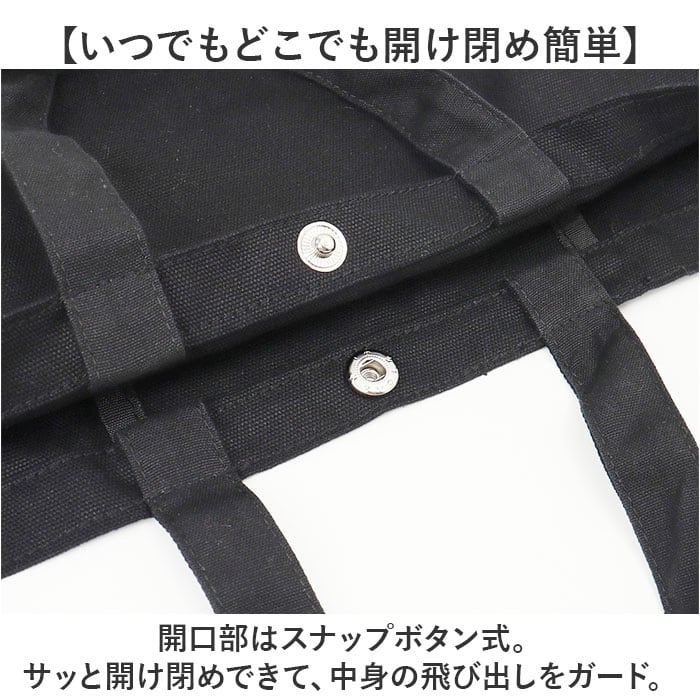 ・開口部はスナップボタン式。サッと開け閉めできて、中身の飛び出しをガード。