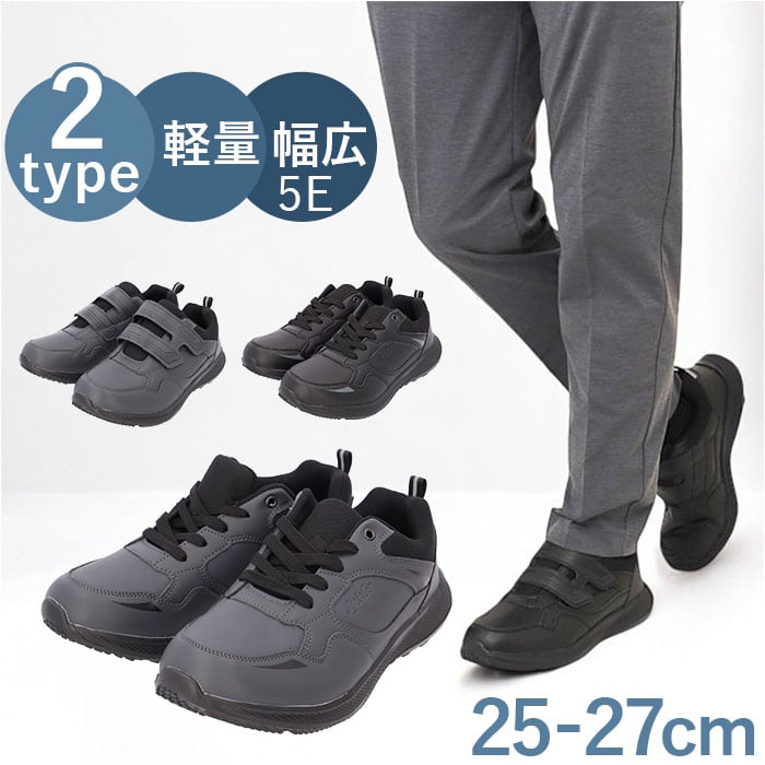 ・幅広の方やゆったり履きたい方、厚手の靴下を履く方にもオススメの5E設計シューズ。