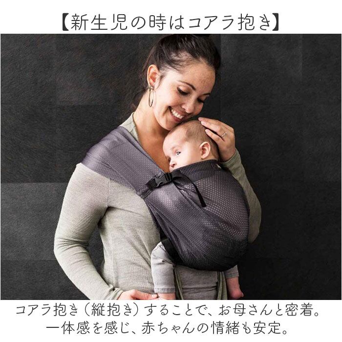 ・コアラ抱き(縦抱き)することで、お母さんと密着。一体感を感じ、赤ちゃんの情緒も安定。