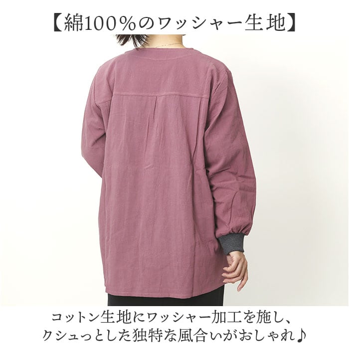 綿ワッシャーリブスモック