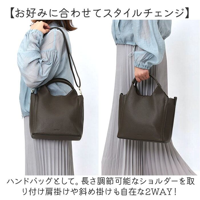 ・ハンドバッグとして。長さ調節可能なショルダーを取り付け肩掛けや斜め掛けも自在な2WAY!